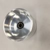 8″diameter crowned drive wheel for 2×72 belt grinders. Lightening cuts are machined into the front and back of the wheel to make it the lightest aluminum 8″ drive wheel on the market. Benefits of lightening cuts to reduce weight equals less rotational mass for faster start ups and decreased loss of power giving you more power to apply for grinding. The wheels are crowned to provide stable belt tracking. The 8 inch drive wheel is great for direct drive set ups with a 1725 RPM motor to achieve a higher SFM. The 8″ diameter increases the surface feet per minute (SFM) by 100% over a 4″ drive wheel. A 1725 RPM motor will run at approximately 3600 SFM and a 3450 RPM motor will run approximately 7200 SFM. If you run a higher rpm motor like a 3450 rpm make sure the rest of your wheels can handle the speed. An 8″ drive wheel on a 3450 rpm motor will spin a 2″ diameter wheel at 13,800 rpm.