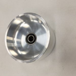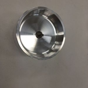 4″diameter crowned drive wheel for 2″x72″ belt grinders. Lightening cuts are machined into the front and back of the wheel to make it the lightest aluminum 4″ drive wheel on the market. Benefits of lightening cuts to reduce weight equals less rotational mass for faster start ups and decreased loss of power giving you more power to apply for grinding. The wheels are crowned to provide stable belt tracking. A 1725 RPM motor will run at approximately 1800 SFM and a 3450 RPM motor will run approximately 3600 SFM.